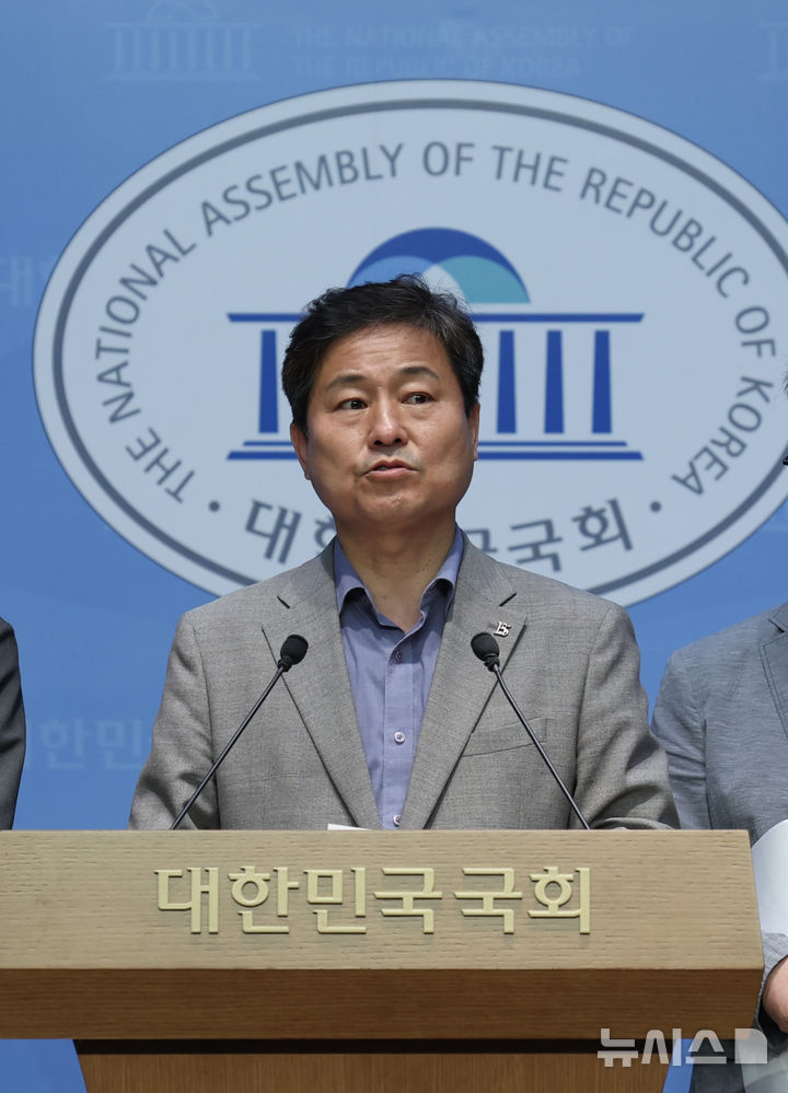 [서울=뉴시스] 김명년 기자 = 김영배 더불어민주당 의원이 16일 오전 서울 여의도 국회 소통관에서 열린 '삼청교육대 피해자 명예회복 및 보상에 관한 법률 개정 요구 기자회견'에서 발언하고 있다. 2025.06.16. [email protected]
