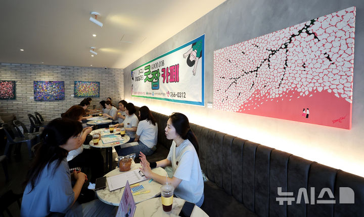 [대구=뉴시스] 이무열 기자 = 16일 대구 수성구 핸즈커피 시지점에서 열린 ‘여성 일자리 굿잡(Good Job) 카페’를 찾은 구직자들이 구직상담을 받고 있다.