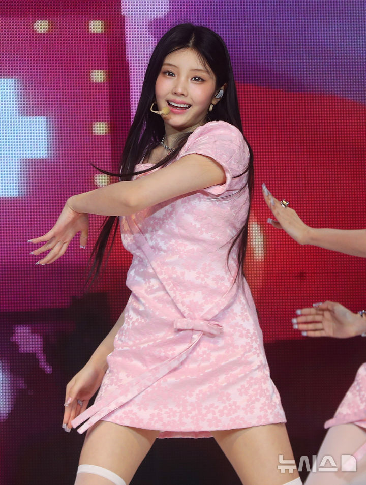 [서울=뉴시스] 김혜진 기자 = 그룹 아일릿이 16일 오후 서울 광진구 광장동 예스24라이브홀에서 열린 세 번째 미니앨범 '밤(bomb)' 발매 기념 쇼케이스에서 무대를 선보이고 있다. 2025.06.16. [email protected]