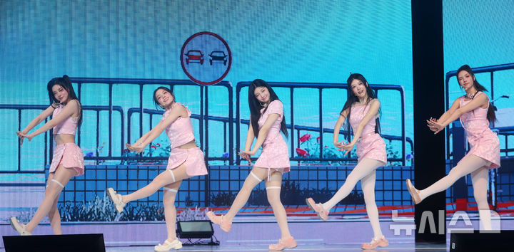 [서울=뉴시스] 김혜진 기자 = 그룹 아일릿이 16일 오후 서울 광진구 광장동 예스24라이브홀에서 열린 세 번째 미니앨범 '밤(bomb)' 발매 기념 쇼케이스에서 무대를 선보이고 있다. 2025.06.16. [email protected]