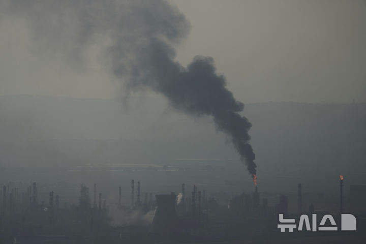 [하이파=AP/뉴시스] 16일(현지 시간) 이란의 미사일 공격을 받은 이스라엘 북부 하이파의 한 정유시설에서 연기가 피어오르고 있다. 이스라엘 최대 정유회사인 바잔은 하이파 항구에 있는 이 회사의 모든 정유 시설이 이란의 미사일 공격으로 완전히 파괴돼 문을 닫았다고 밝혔다. 2025.06.17.