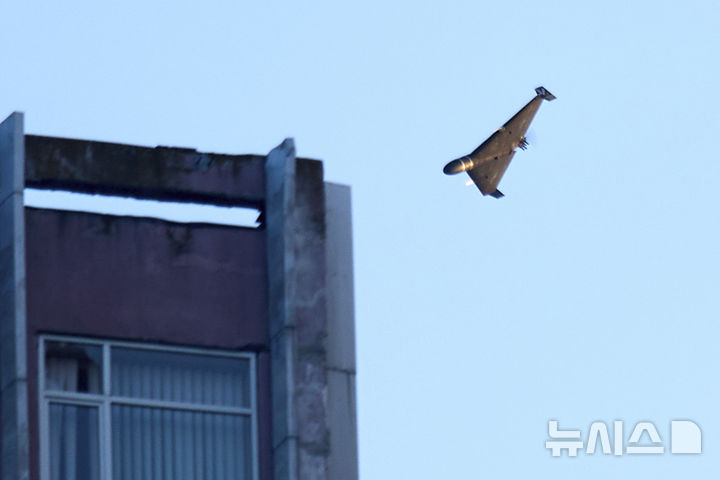 [키이우=AP/뉴시스] 17일(현지 시간) 러시아군 드론이 우크라이나 키이우의 한 건물을 타격하고 있다. 러시아가 키이우를 공습해 최소 20명이 부상한 것으로 전해졌다. 2025.06.17.