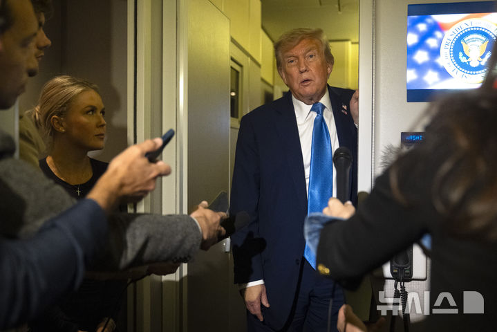 [미 에어포스 원=AP/뉴시스]도널드 트럼프 미 대통령이 16일 캐나다 캘거리에서 열린 주요 7개국(G7) 정상회담 일정을 단축, 워싱턴으로 조기 귀국하는 미 대통령 전용기 에어포스원에서 기자들과 이야기를 나누고 있다. 그는 이란 핵문제의 진정한 종식을 원하며, 이는 단지 이란과 이스라엘 간 휴전만이 아니라 이란이 핵을 '완전히' 포기하는 것을 의미한다고 말했다고 미 CBS 방송이 17일 보도했다. 2025.06.17.