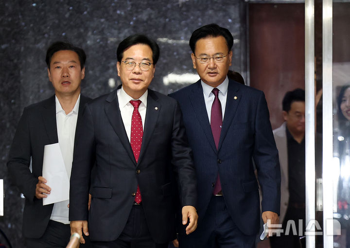[서울=뉴시스] 김명년 기자 = 송언석 국민의힘 원내대표가 17일 오전 서울 여의도 국회에서 열린 원내대책회의에 참석하고 있다. 2025.06.17. [email protected]