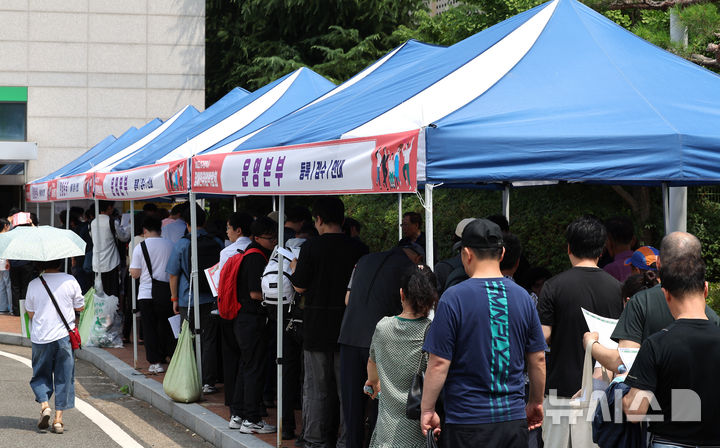 [대구=뉴시스] 이무열 기자 = 17일 대구 달서구 대구직업능력개발원 실내체육관에서 열린 ‘2025 대구 장애인 취업박람회’를 찾은 구직자들이 입장을 위해 줄 서 있다. 2025.06.17. [email protected]