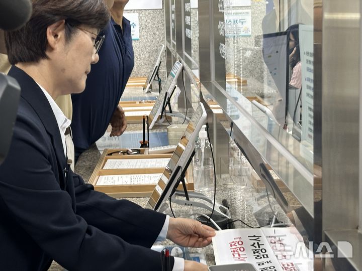 [대전=뉴시스] 김도현 기자 = 18일 오후 대전 서구 둔산동 대전지방검찰청 종합민원실에서 더불어민주당소속 신혜영 대전서구의원이 서철모 서구청장에 대한 수사 진정서를 접수하고 있다. 2025.06.18. [email protected]
