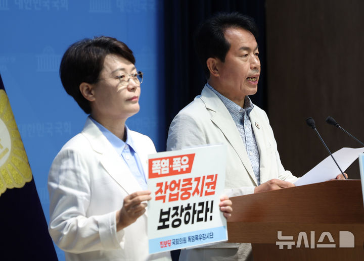 [서울=뉴시스] 김명년 기자 = 윤종오 진보당 원내대표가 18일 오전 서울 여의도 국회 소통관에서 '진보당 국회의원단 폭염폭우감시단' 기자회견을 열고 발언하고 있다. 2025.06.18. [email protected]