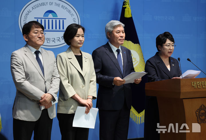 [서울=뉴시스] 김명년 기자 = 김선민 조국혁신당 당대표 권한대행이 18일 오전 서울 여의도 국회 소통관에서 '검찰독재 정치보복 진상규명과 피해회복을 위한 특별법' 발의 기자회견을 열고 발언하고 있다. 2025.06.18. [email protected]