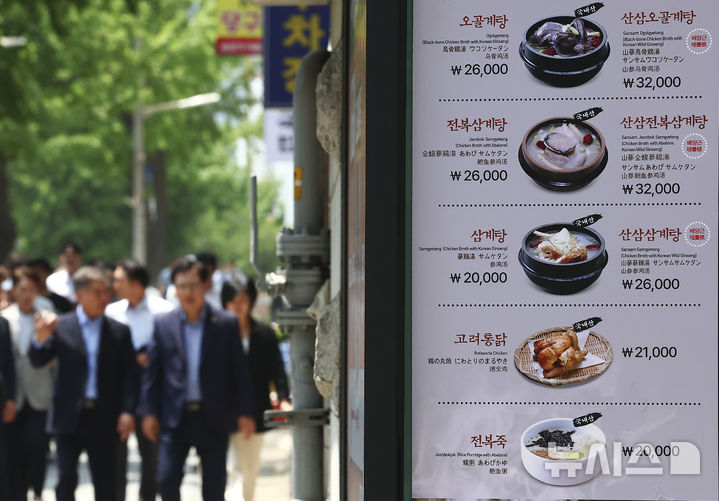 [서울=뉴시스] 김근수 기자 = 18일 서울 시내의 한 삼계탕집에 가격표가 붙어 있다.