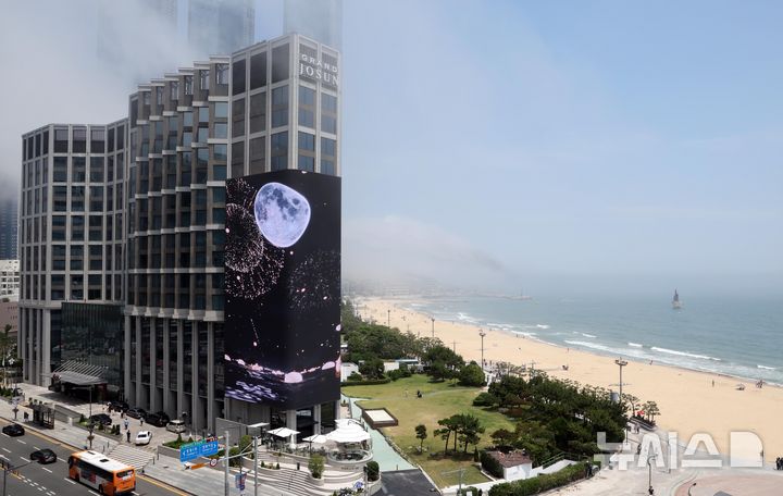 [부산=뉴시스] 하경민 기자 = 비수도권 최초 옥외광고물 자유표시구역으로 선정된 부산 해운대구 해운대해수욕장 앞 그랜드 조선 부산 호텔 외벽에 설치된 초대형 미디어 전광판 '그랜드 조선 미디어'의 본격적인 운영을 앞두고 18일 입체감 넘치는 영상이 시범 상영되고 있다.
