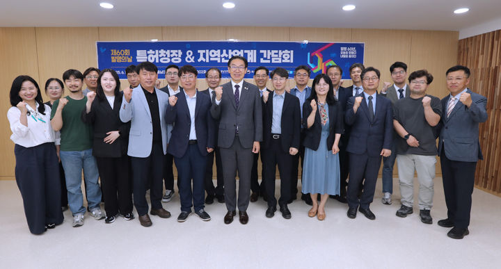 [서울=뉴시스] 조성우 기자 = 김완기 특허청장이 18일 대전 유성구 충남대학교 융합교육혁신센터에서 열린 특허청-충남대-지역기업 간 IP교육 협력 간담회에서 참석자들과 기념촬영하고 있다. (사진=특허청 제공) 2025.06.18. [email protected] *재판매 및 DB 금지