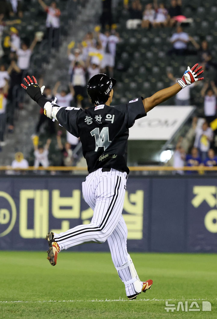 9회말 동점상황, 경기 승리로 이끈 송찬의의 끝내기 안타