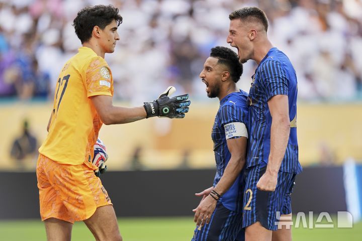 [마이애미가든스=AP/뉴시스] 18일(현지 시간) 미 플로리다주 마이애미가든스의 하드록 스타디움에서 열린 2025 국제축구연맹(FIFA) 클럽 월드컵 조별리그 H조 1차전에서 알힐랄(사우디) 선수들이 후반 42분 페널티킥을 막아낸 골키퍼 야신 부누(왼쪽)와 함께 환호하고 있다. 알힐랄은 클럽 월드컵과 프리메라리가, 챔피언스리그 최다 우승팀인 레알 마드리드(스페인)와 1-1로 비기며 승점 1점을 챙겼다. 2025.06.19.