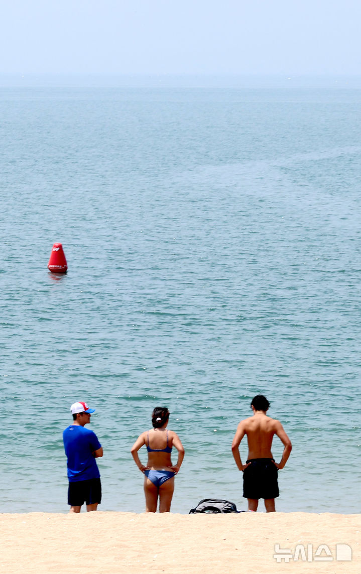[인천=뉴시스] 전진환 기자 = 전국이 30도 안팎의 무더운 날씨를 보인 19일 인천 중구 왕산해수욕장을 찾은 관광객들이 바닷바람에 더위를 식히고 있다.