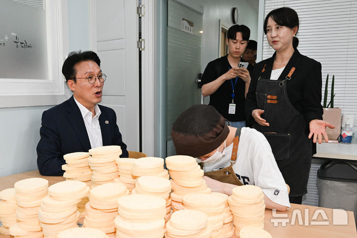 발달장애인 일자리 둘러보는 김민석 총리 후보