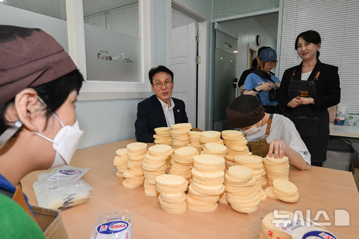 발달장애인 일자리 현장 찾은 김민석 총리 후보