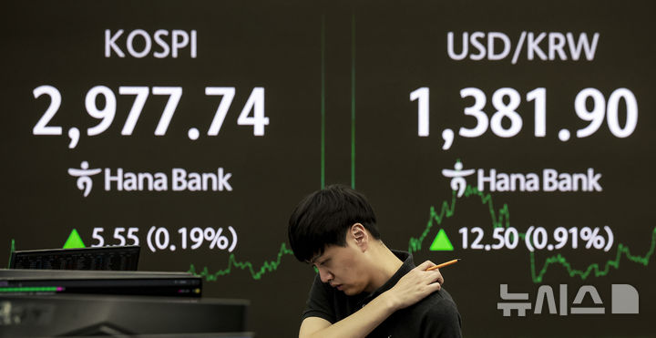 [서울=뉴시스] 정병혁 기자 = 19일 서울 중구 하나은행 딜링룸에서 직원들이 업무를 보고 있다. 이날 코스피는 전 거래일(2972.19)보다 5.55포인트(0.19%) 오른 2977.74에, 코스닥 지수는 전 거래일(779.73)보다 2.78포인트(0.36%) 상승한 782.51에 거래를 종료했다.