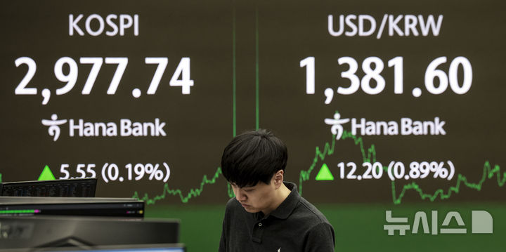 [서울=뉴시스] 정병혁 기자 = 19일 서울 중구 하나은행 딜링룸에서 직원들이 업무를 보고 있다. 이날 코스피는 전 거래일(2972.19)보다 5.55포인트(0.19%) 오른 2977.74에, 코스닥 지수는 전 거래일(779.73)보다 2.78포인트(0.36%) 상승한 782.51에 거래를 종료했다.