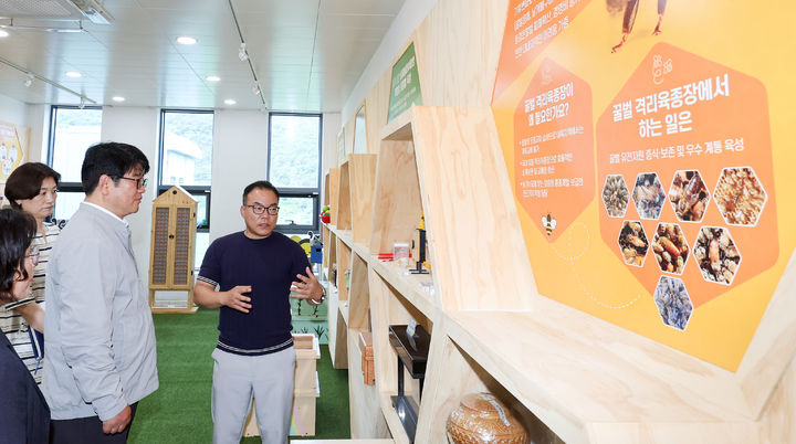 [부안=뉴시스] 강종민 기자 = 권재한 농촌진흥청장이 19일 전북 부안군 꿀벌위도격리육종장을 찾아 육종 양봉장을 살펴보고 꿀벌 유전자원 관리와 보급 상황을 점검하고 있다. (사진=농진청 제공) 2025.06.19. [email protected] *재판매 및 DB 금지