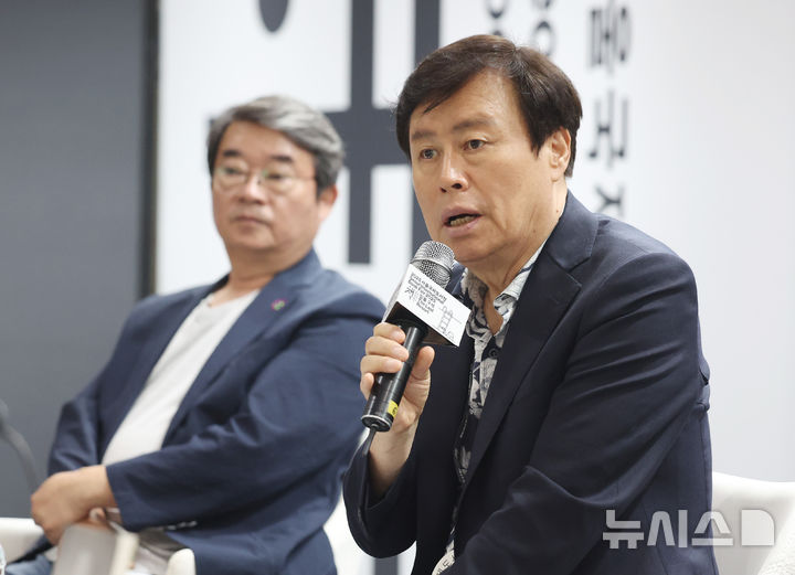 [서울=뉴시스] 김진아 기자 = 도종환 시인이 19일 서울 강남구 코엑스에서 열린 서울국제도서전에서 북토크 '그대와 가장 가까운 시간, 시 낭송회'에서 인사말을 하고 있다. 2025.06.19. [email protected]