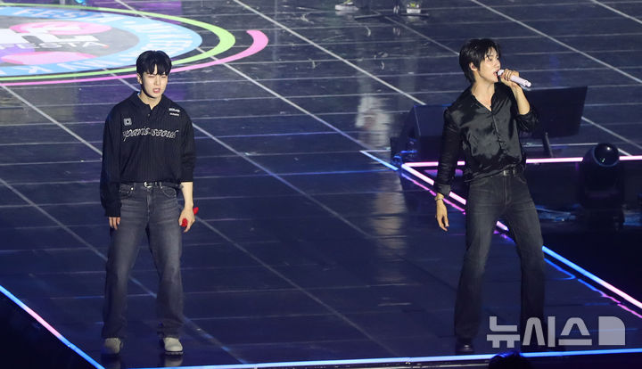 [서울=뉴시스] 김혜진 기자 = 19일 서울 송파구 올림픽공원 핸드볼경기장에서 열린 2025 마이케이 페스타(MyK FESTA)에서 그룹 엔플라잉 이승협이 공연을 하고 있다. 2025.06.19. [email protected]