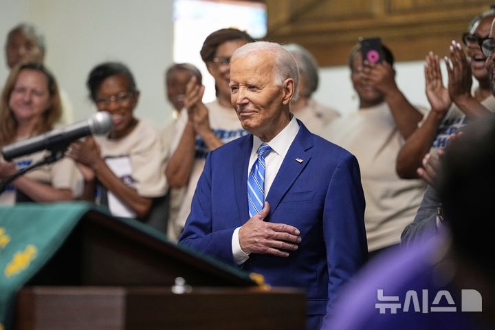 [갤버스턴=AP/뉴시스] 조 바이든 전 미국 대통령이 19일(현지 시간) 미 텍사스주 갤버스턴의 리디 채플 아프리카감리교회(AME)에서 열린 준틴스 기념 예배에 참석해 연설하고 있다. '준틴스'는 1865년 6월 19일 텍사스주를 끝으로 흑인 노예제가 폐지된 것을 기념하는 연방 공휴일이다. 2025.06.20.