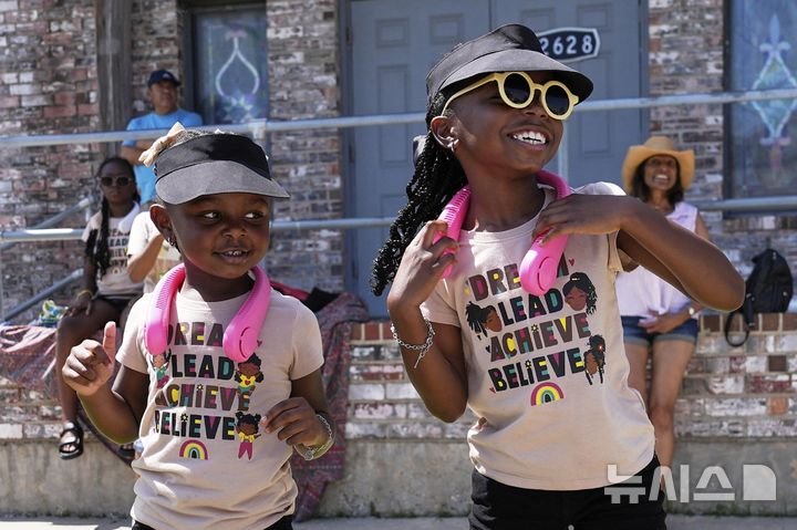 [갤버스턴=AP/뉴시스] 19일(현지 시간) 미 텍사스주 갤버스턴에서 두 흑인 소녀가 '준틴스' 퍼레이드를 지켜보고 있다. '준틴스'는 1865년 6월 19일 텍사스주를 끝으로 흑인 노예제가 폐지된 것을 기념하는 연방 공휴일이다. 2025.06.20.