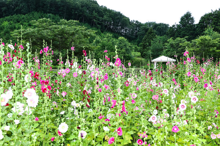 함안 악양생태공원에 핀 '접시꽃 당신'