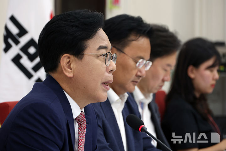 [서울=뉴시스] 고승민 기자 = 송언석 국민의힘 원내대표가 22일 서울 여의도 국회에서 이재명 대통령과 여야 지도부 오찬 관련 기자간담회를 하고 있다. 2025.06.22. [email protected]