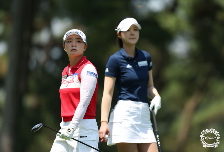 [서울=뉴시스] 홍효식 기자 = 22일 경기 안산 대부도에 위치한 더헤븐CC에서 열린 '더헤븐 마스터즈' 파이널라운드, 이다연(왼쪽)과 김나영이 4번홀에서 공을 확인하고 있다. (사진=KLPGA 제공) 2025.06.22. [email protected] *재판매 및 DB 금지