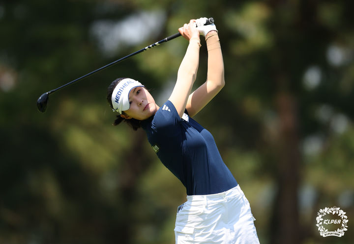 [서울=뉴시스] 홍효식 기자 = 22일 경기 안산 대부도에 위치한 더헤븐CC에서 열린 '더헤븐 마스터즈' 파이널라운드, 김나영이 4번홀에서 티샷하고 있다. (사진=KLPGA 제공) 2025.06.22. [email protected] *재판매 및 DB 금지