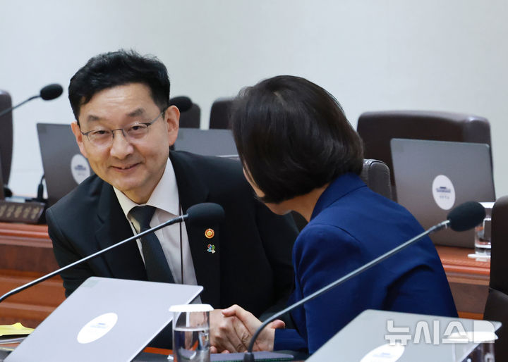 [서울=뉴시스] 고범준 기자 = 윤창렬 국무조정실장과 오영주 중소벤처기업부 장관이 24일 서울 용산 대통령실 청사에서 열린 국무회의에서 대화하고 있다. (대통령실통신사진기자단) 2025.06.24. [email protected]