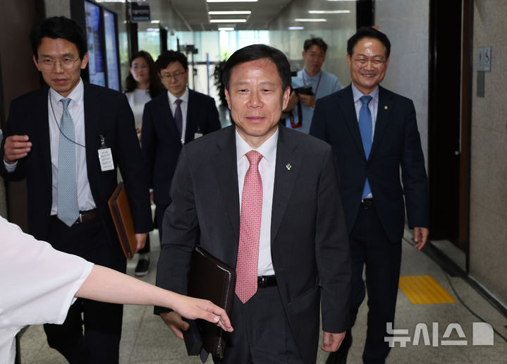 [서울=뉴시스] 김명년 기자 = 임웅순 국가안보실 안보2차장이 24일 오후 서울 여의도 국회에서 열린 더불어민주당 중동발 위기 관련 긴급 안보 점검 회의를 마치고 이동하고 있다. 2025.06.24. [email protected]