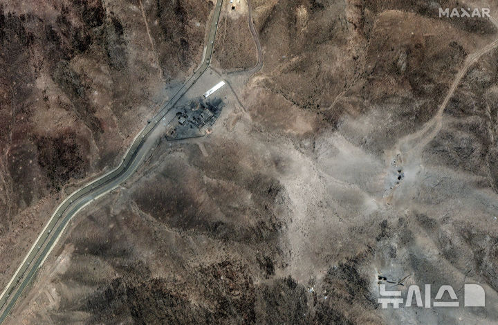 [포르도=AP/뉴시스] 맥사 테크놀로지스가 제공한 위성사진에 24일(현지 시간) 이란 포르도 농축 시설이 미군의 지난 23일 공습으로 파괴돼 있다. 2025.06.25.