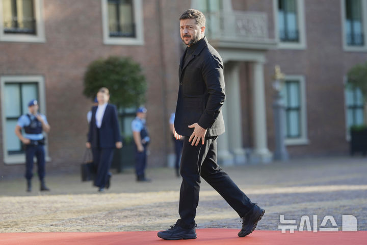 [헤이그=AP/뉴시스] 볼로디미르 젤렌스키 우크라이나 대통령이 24일(현지 시간) 네덜란드 헤이그의 하우스텐보스궁에서 열리는 북대서양조약기구(나토) 정상회의 공식 만찬장으로 향하고 있다. 2025.06.25.