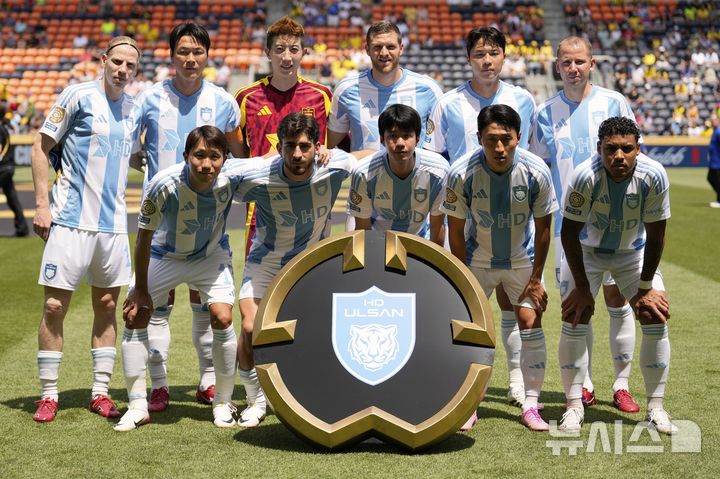 [신시내티=AP/뉴시스] 울산 HD 선수들이 25일(현지 시간) 미 오하이오주 신시내티 TQL 스타디움에서 열리는 2025 국제축구연맹(FIFA) 클럽 월드컵 조별리그 F조 3차전 보루시아 도르트문트(독일)와의 경기에 앞서 기념 촬영하고 있다. 울산 HD가 0-1로 패해 3패를 기록하며 승점을 올리지 못하고 대회를 마무리했다. 2025.06.26.