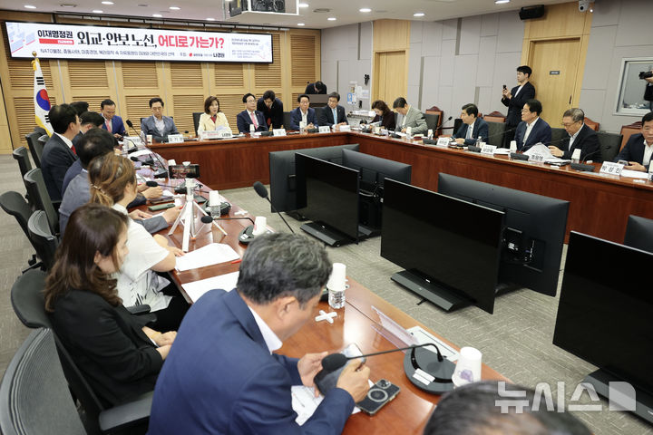 [서울=뉴시스] 김명년 기자 = 26일 오전 서울 여의도 국회 의원회관에서 나경원 국민의힘 의원실 주최로 '이재명정권 외교·안보 노선, 어디로 가는가' 긴급토론회가 열리고 있다. 2025.06.26. [email protected]