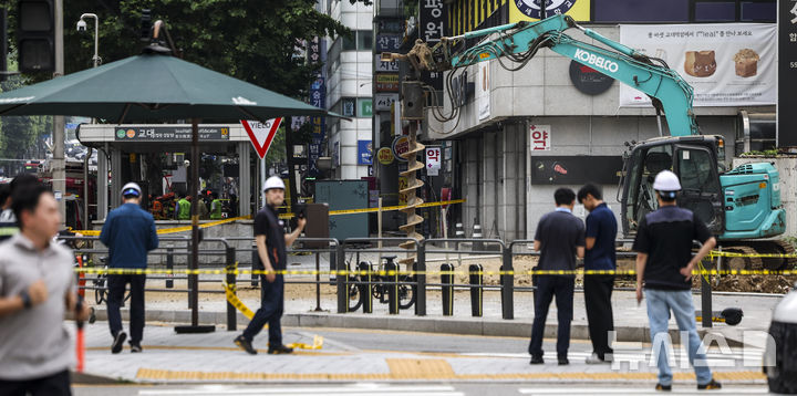 교대역 인근 가스누출 사고 현장에 보이는 굴착기