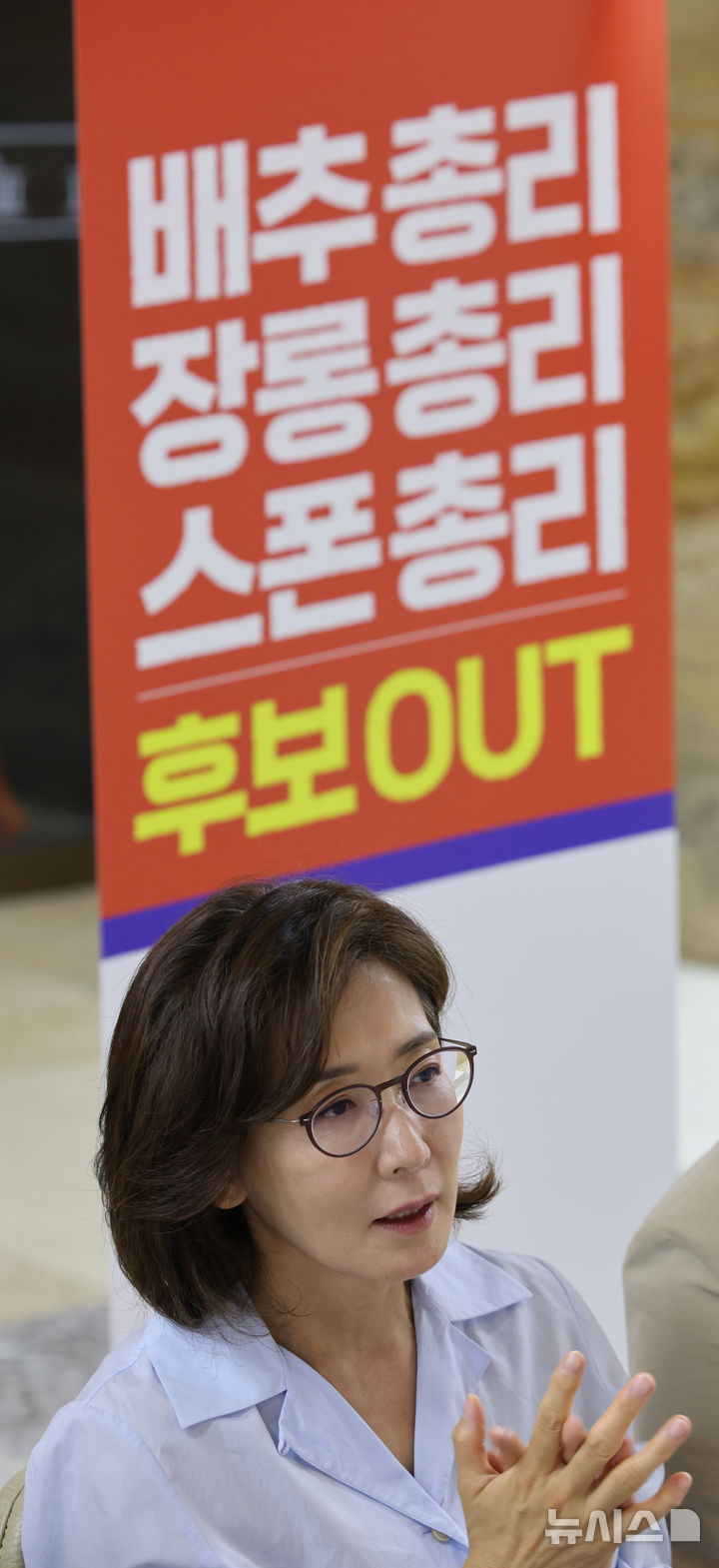 [서울=뉴시스] 김금보 기자 = 나경원 국민의힘 의원이 29일 서울 여의도 국회 로텐더홀에서 김민석 국무총리 인사 철회와 더불어민주당의 법제사법위원회 위원장직 반환을 요구하는 철야 농성을 하며 서명옥, 강선영 의원과 SNS 라이브 방송을 하고 있다. 2025.06.29. [email protected]