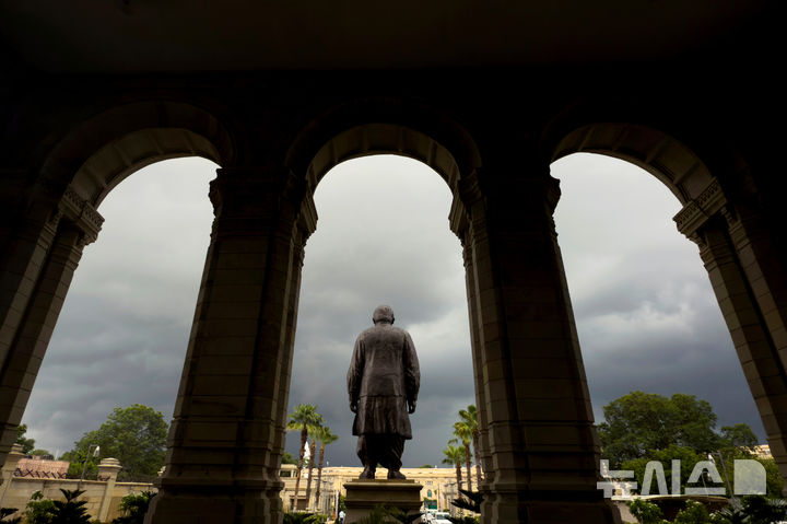 [러크나우=AP/뉴시스] 30일(현지 시간) 인도 러크나우의 정부 청사 상공에 몬순 구름이 짙게 깔려 있다. 2025.06.30.