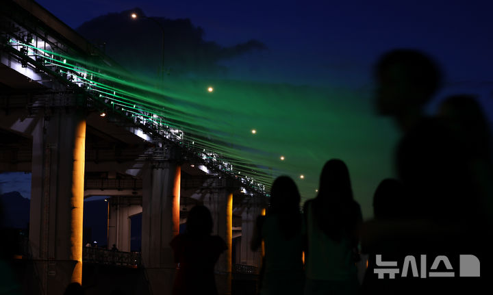 [서울=뉴시스] 최진석 기자 = 지난 밤 서울에 올해 첫 열대야가 나타난 30일 서울 반포한강공원에서 시민들이 반포대교 달빛 무지개 분수를 바라보며 더위를 식히고 있다. 2025.06.30. [email protected]