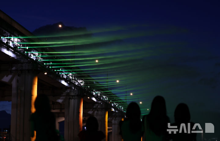 [서울=뉴시스] 최진석 기자 = 지난 밤 서울에 올해 첫 열대야가 나타난 30일 서울 반포한강공원에서 시민들이 반포대교 달빛 무지개 분수를 바라보며 더위를 식히고 있다. 2025.06.30. [email protected]
