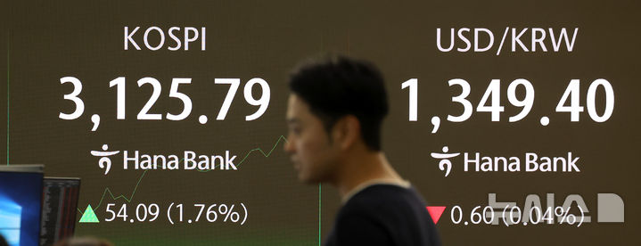 코스피 장 초반 3120선, 원달러 환율 1350원 아래