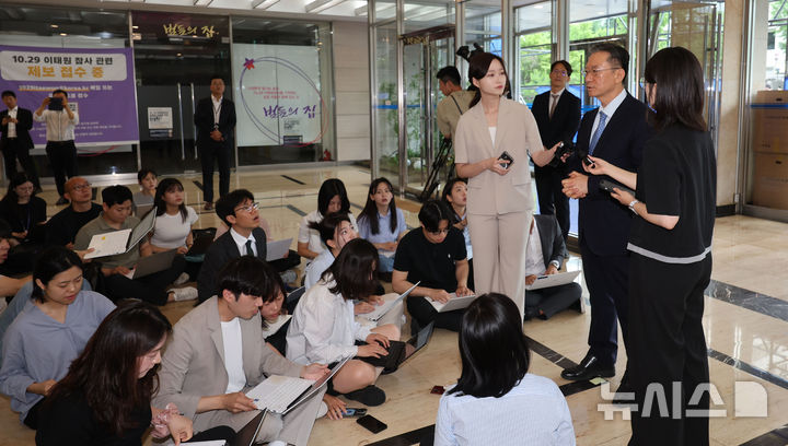 [서울=뉴시스] 권창회 기자 = 정성호 법무부장관 후보자가 1일 오전 서울 종로구 적선현대빌딩에 마련된 인사청문회 준비 집무실로 출근하며 취재진 질의에 답하고 있다. 2025.07.01. [email protected]