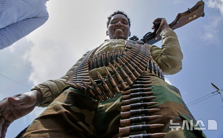 [모가디슈=AP/뉴시스] 1일(현지 시간) 소말리아 모가디슈에서 열린 소말리아 독립 65주년 기념행사에서 탄띠를 맨 소말리아 군인이 미소짓고 있다. 소말리아는 1960년 6월 26일 영국령 소말릴란드가 독립하고 이어 7월 1일 이탈리아령 소말릴란드가 독립한 후 통합하면서 소말리아공화국이 탄생했다. 2025.07.02.