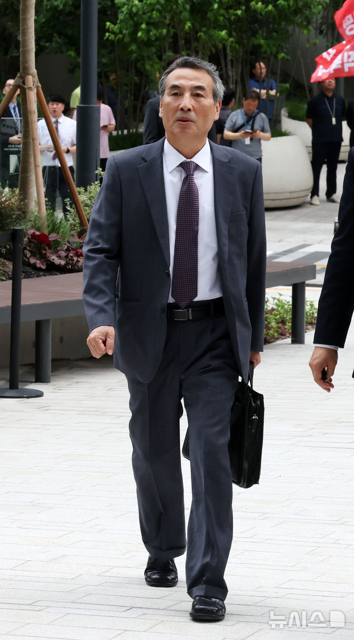 [서울=뉴시스] 배훈식 기자 = 윤석열 전 대통령의 부인 김건희 여사 의혹을 수사하는 민중기 특별검사가 2일 오전 서울 종로구 KT 광화문빌딩 WEST에 마련된 특검 사무실로 출근하고 있다. 2025.07.02. [email protected]