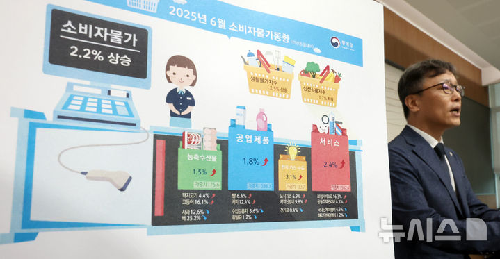 [세종=뉴시스] 강종민 기자 = 박병선 통계청 물가동향과장이 2일 세종시 정부세종청사에서 2025년 6월 소비자물가동향을 발표하고 있다.
