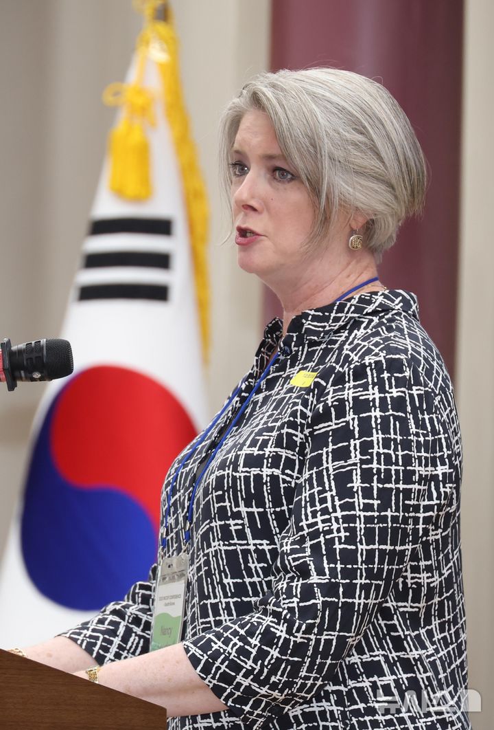 [서울=뉴시스] 조성봉 기자 = 낸시룩스 INCCIP 대표가 2일 오후 서울 여의도 국회 의원회관에서 열린 2025 INCCIP 제4회 국제 컨퍼런스 국회포럼에서 인사말을 하고 있다. 이날 포럼에서는 수용자 자녀의 회복탄력성과 지원제도에 대한 논의를 진행했다. 2025.07.02. [email protected]