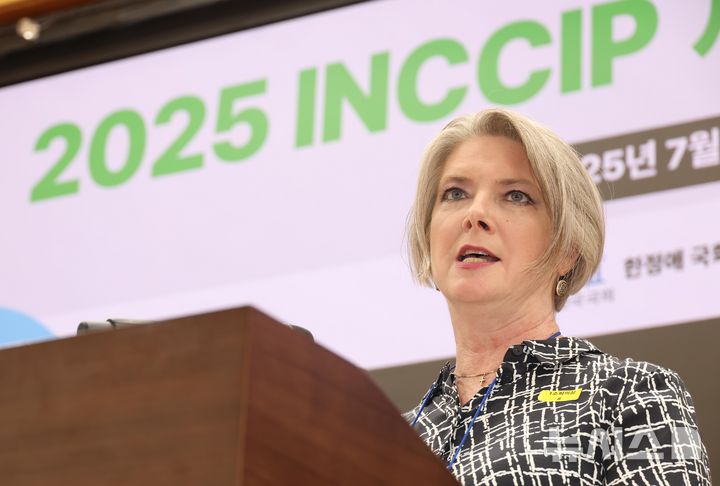 [서울=뉴시스] 조성봉 기자 = 낸시룩스 INCCIP 대표가 2일 오후 서울 여의도 국회 의원회관에서 열린 2025 INCCIP 제4회 국제 컨퍼런스 국회포럼에서 인사말을 하고 있다. 이날 포럼에서는 수용자 자녀의 회복탄력성과 지원제도에 대한 논의를 진행했다. 2025.07.02. [email protected]