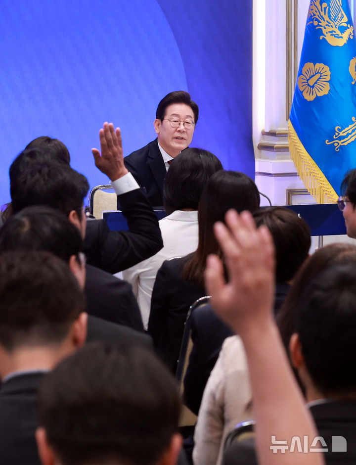 [서울=뉴시스] 고범준 기자 = 이재명 대통령이 3일 청와대 영빈관에서 열린 '대통령의 30일, 언론이 묻고 국민에게 답하다' 기자회견에서 기자들의 질문을 받고 있다. 2025.07.03. [email protected]